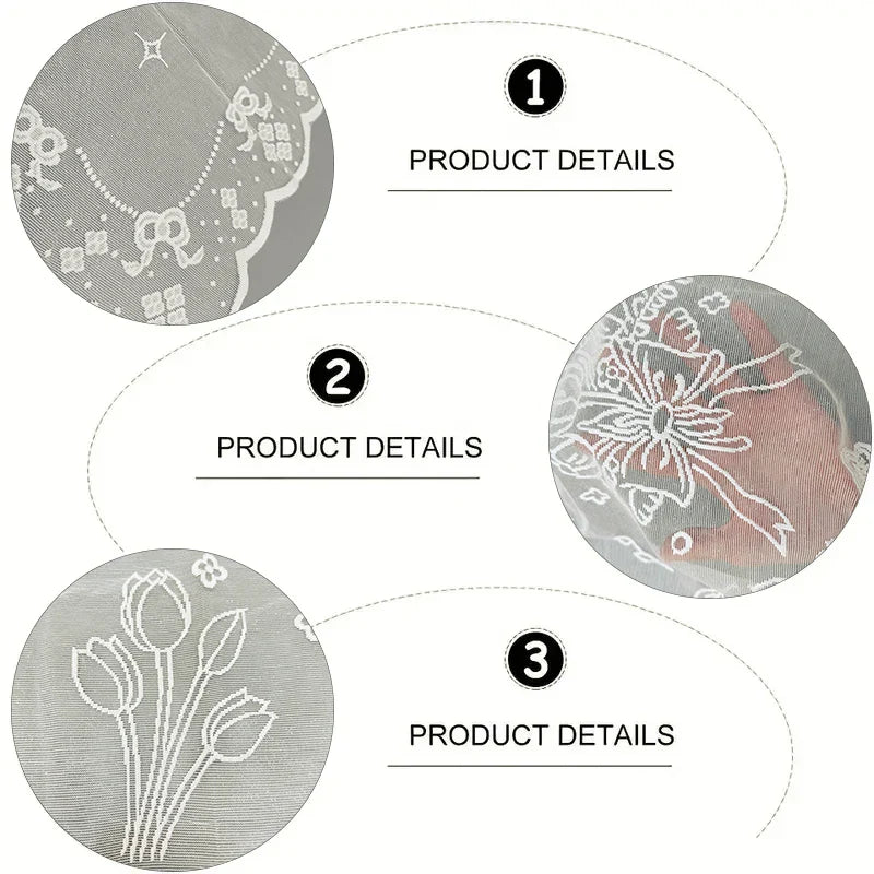 • Progetto: Presenta un elaborato pizzo ricamato con un motivo geometrico, che aggiunge un tocco di raffinatezza a qualsiasi ambiente.