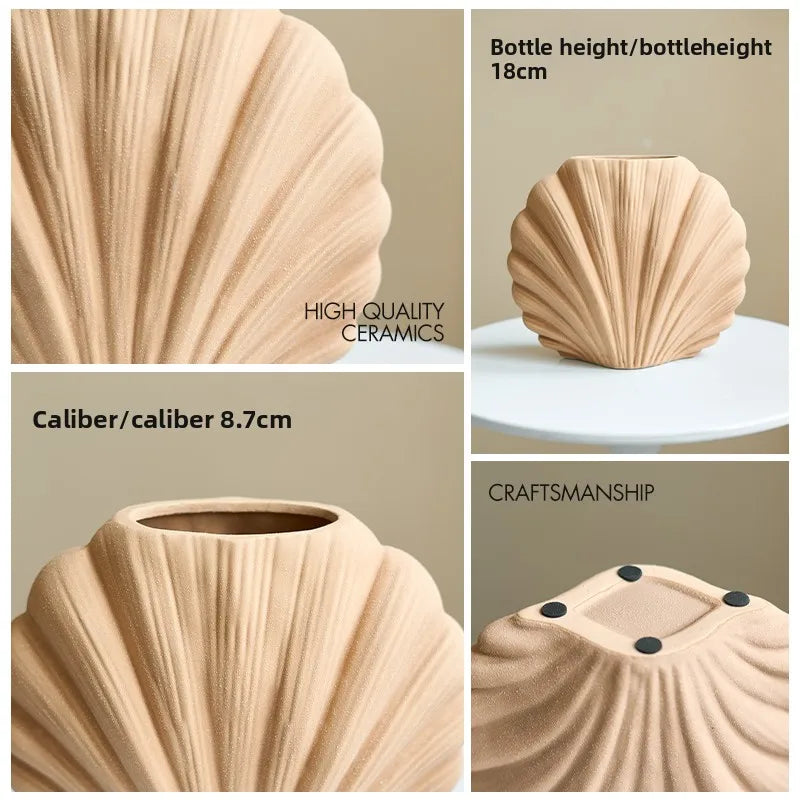 Introducing the Shell Dried Flower Vase, a beautiful handmade ceramic flower pot that brings a touch of coastal charm to any space. Perfect for those who appreciate modern design, this vase is an ideal decorative accent for your dining table, TV cabinet, or any corner of your home.
