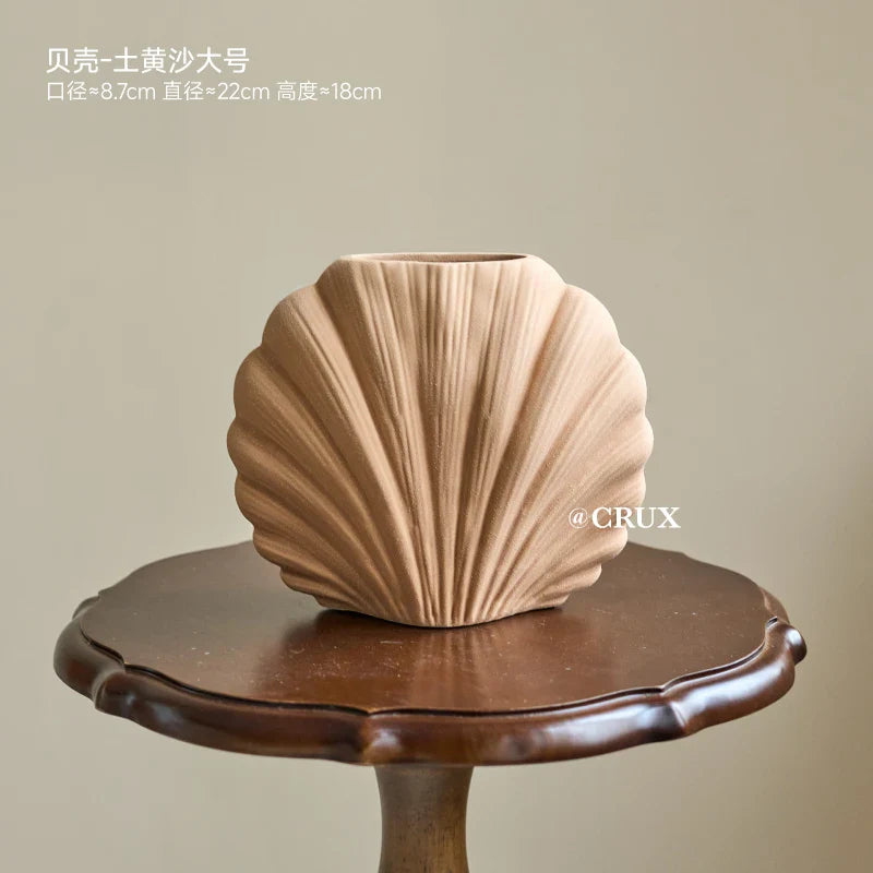 Shell Dried Flower Vase - Handmade Ceramic Flower Pot